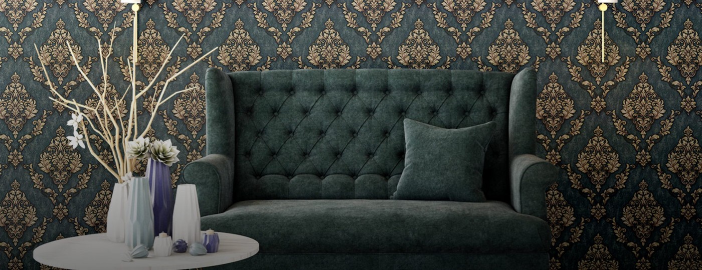 Сочетание светлых и темных цветов, патины и позолоты подчеркивают растительные элементы дамаска.
